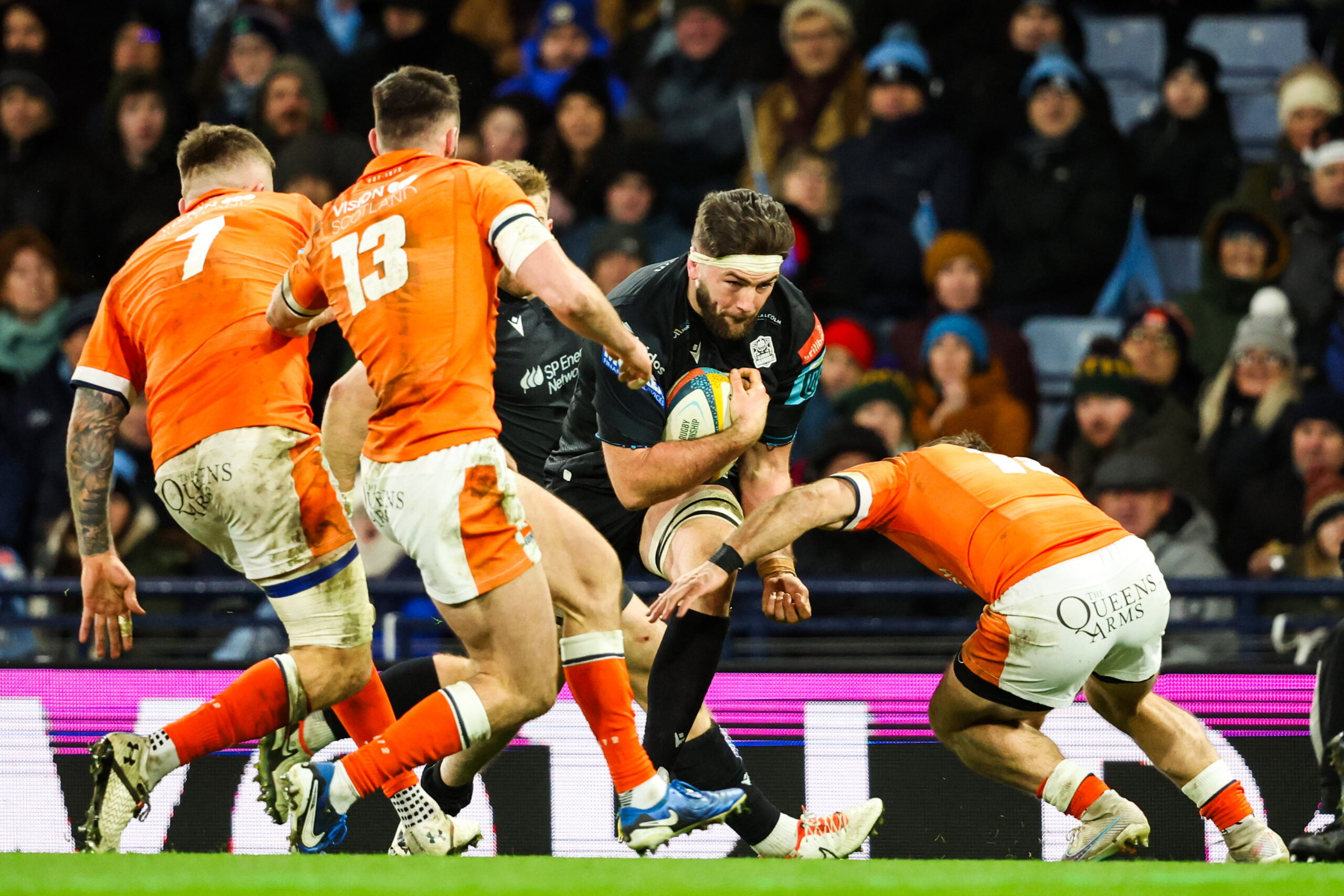 GLASGOW, SCOTLAND - DECEMBER 22: Glasgow Warriors Ally MIller in action during a United Rugby Championship match Glasgow Warriors and Edinburgh Rugby at Hampden Park, on December 22, 2024, in Glasgow, Scotland. (Photo by Ross MacDonald / SNS Group) Determined to put on a show, Glasgow Warriors held Edinburgh to a 33-14 win in the first leg of the 1872 Cup.