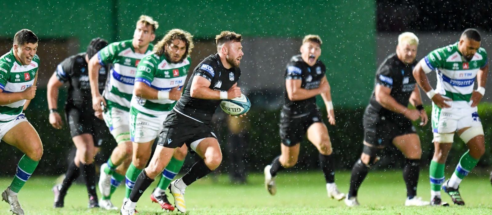 Neither side were really able to establish a rhythm as the opening quarter drew to a close, with errors and the concession of penalties putting paid to the attacks of both teams. Yet the first try of the match – and indeed of the URC season – would go to Benetton; a counter-attack from turnover ball saw the Italian side set up camp in the Glasgow 22, before Giacomo da Re’s floated pass over the top gave Eduardo Padovani a run-in to the corner. The conversion drifted wide, but Benetton led 8-3 after 22 minutes.