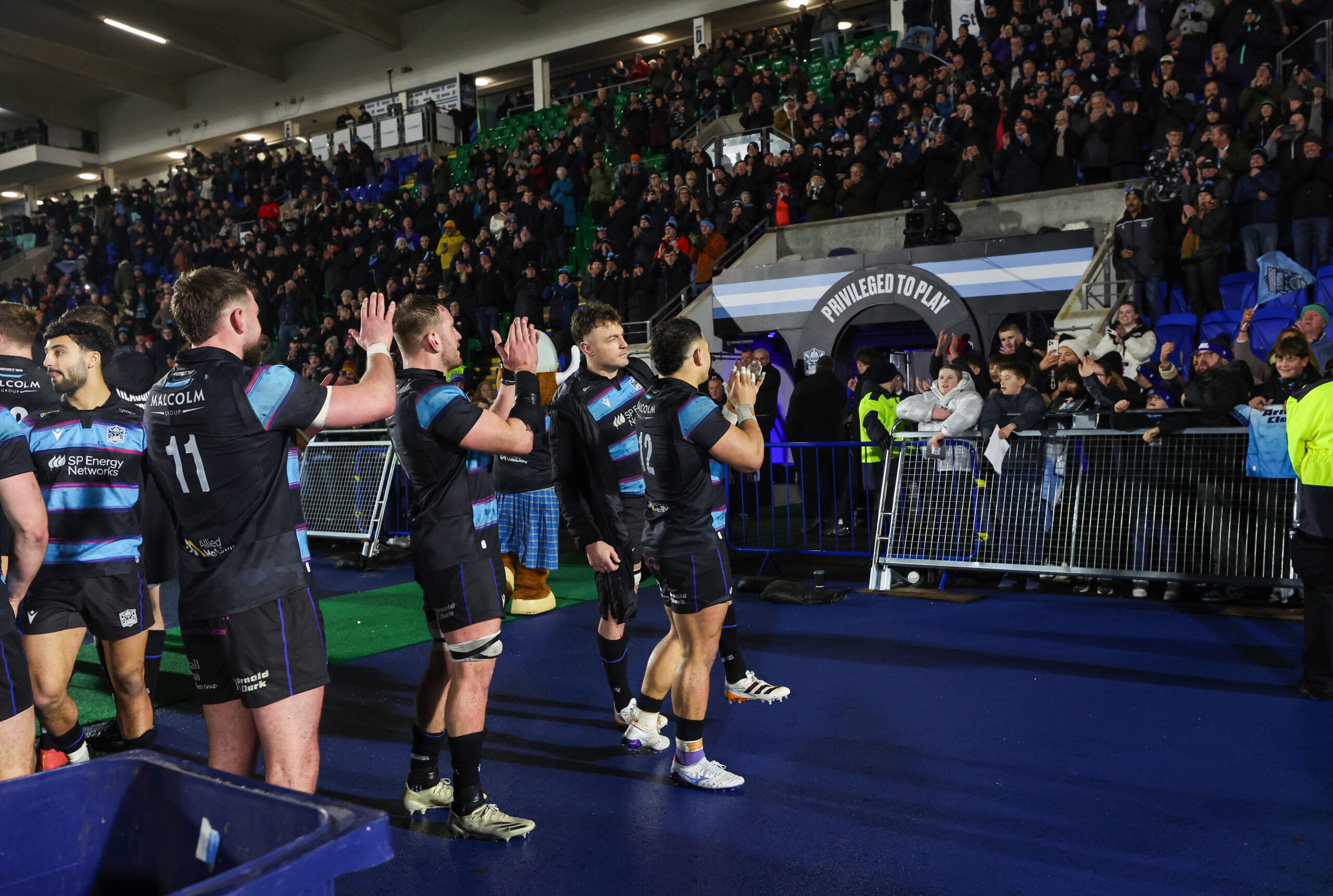 GLASGOW, SCOTLAND - JANUARY 18: The Warriors squad applaud the fans at full time during a 2025/26 Investec Champions Cup Round 4 match between Glasgow Warriors and Saracens at Scotstoun Stadium, on January 18, 2026, in Glasgow, Scotland. (Photo by Craig Williamson / SNS Group) The Warriors finished top of their pool with perfect record to secure home advantage, and will return to knockout action in Europe’s elite competition.