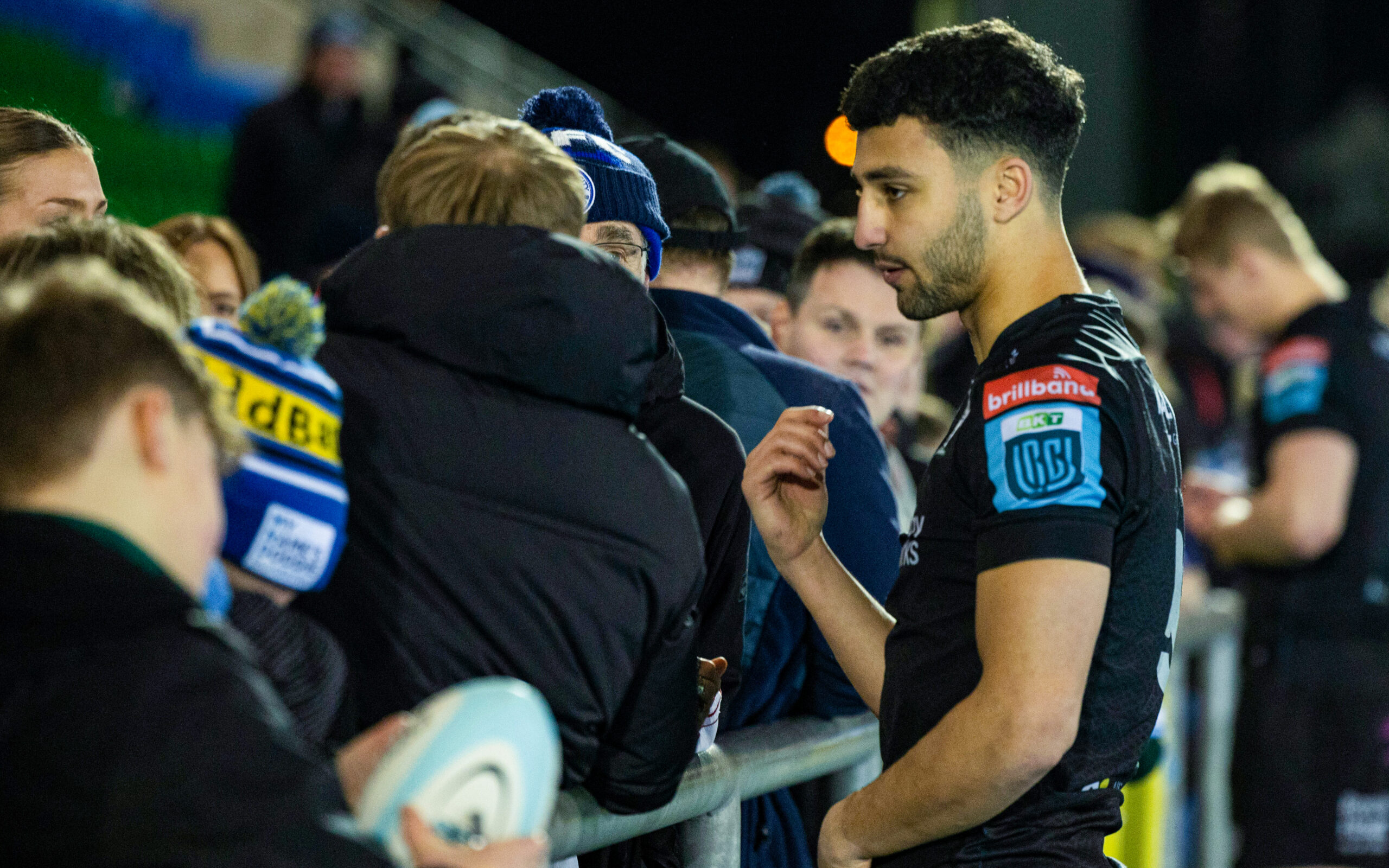 GLASGOW, SCOTLAND - MARCH 01: Warriors' Ben Afshar at full time during a BKT United Rugby Championship match between Glasgow Warriors and Ospreys at Scotstoun Stadium, on March 01, 2025, in Glasgow, Scotland. (Photo by Ross MacDonald / SNS Group)