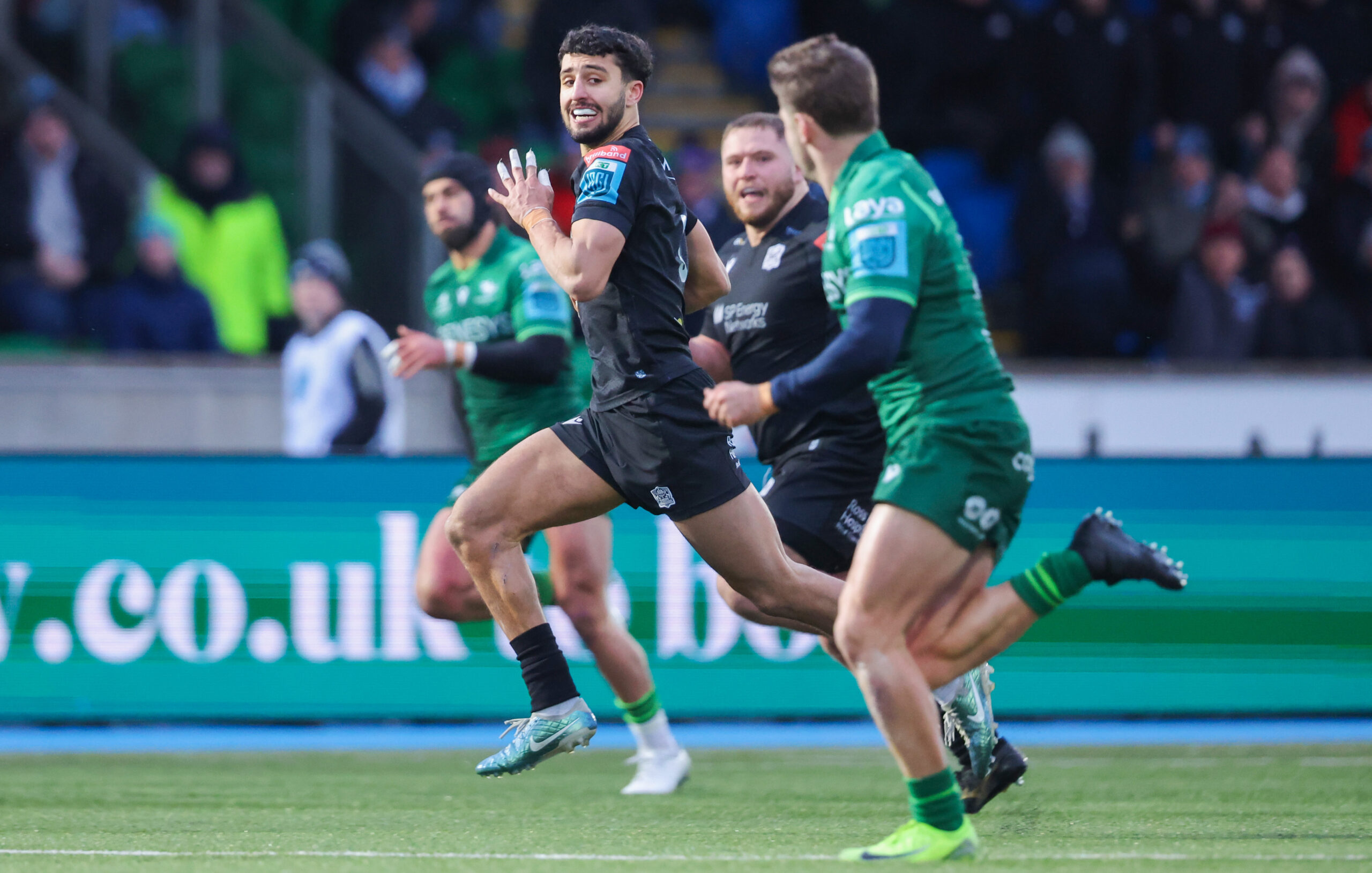 GLASGOW, SCOTLAND - JANUARY 26: Glasgow Warriors' Ben Afshar runs through to score a first half try during a United Rugby Championship match between Glasgow Warriors and Connacht at Scotstoun Stadium, on January 26, 2025, in Glasgow, Scotland. (Photo by Ross MacDonald / SNS Group) Click here to read our Match Preview.