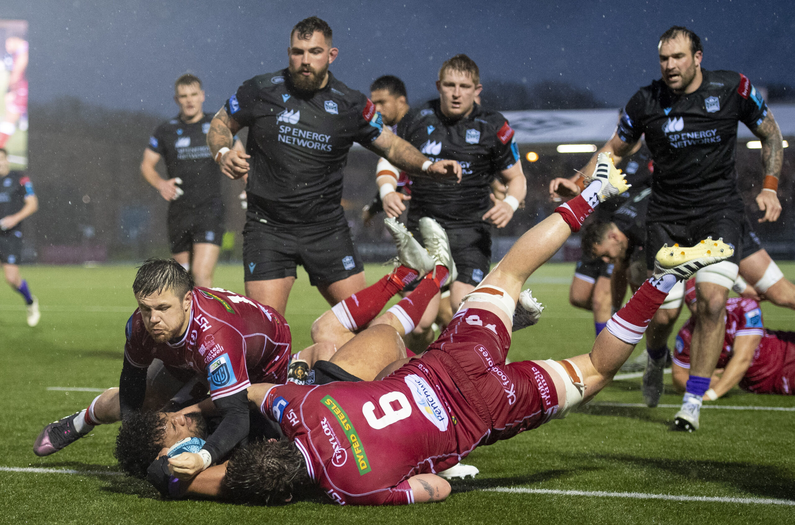 GLASGOW, SCOTLAND - APRIL 14: Warriors’ Sione Vailanu scores a try during a BKT United Rugby Championship match between Glasgow Warriors and Scarlets at Scotstoun Stadium, on April 14, 2023, in Glasgow, Scotland. (Photo by Ross MacDonald / SNS Group) Glasgow Warriors will be traveling all the way down to Llanelli, to visit Parc y Scarlets for Saturday’s kick-off. Glasgow are still unbeaten in European Competition and will be bringing all they can to continue that run all the way to the finals in May.