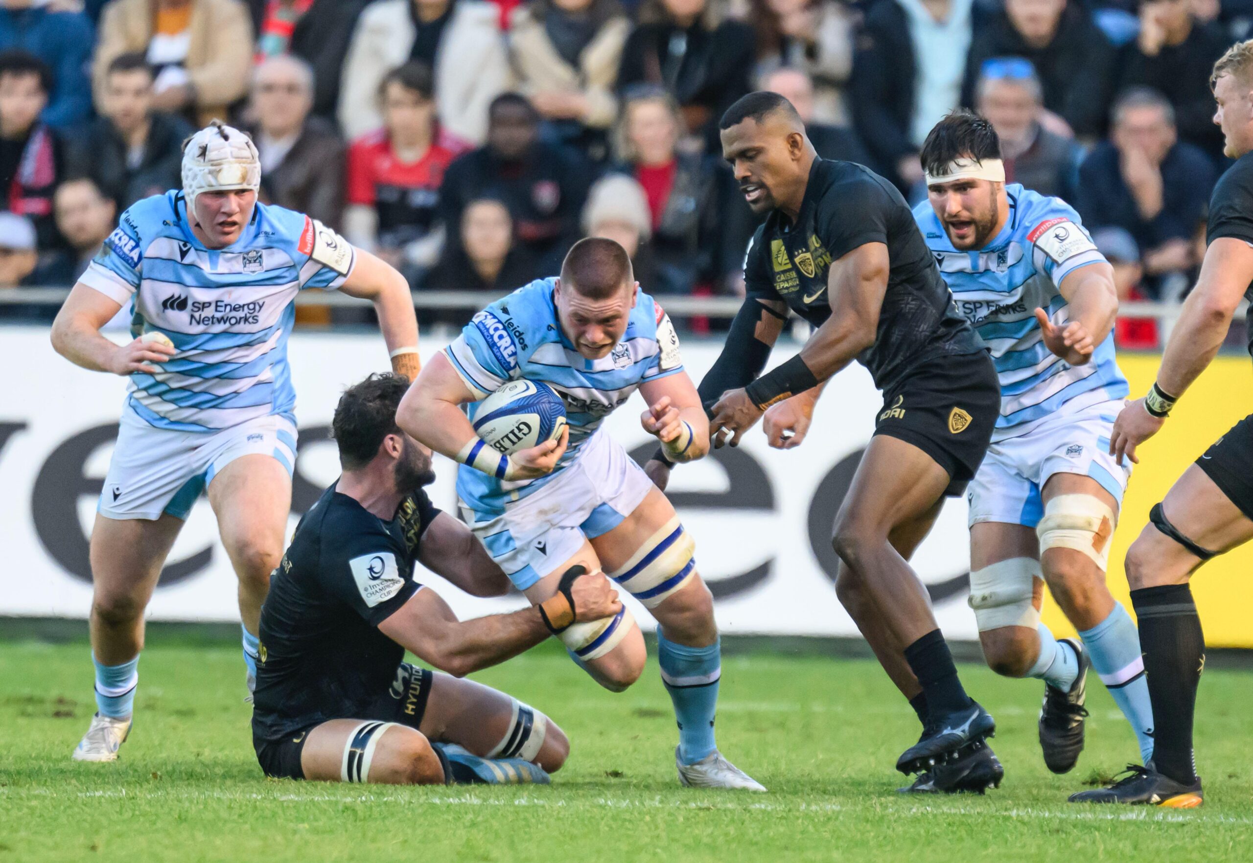 A spark was imminent, and it arrived on 24 minutes. From deep in his own 22, Ben Afshar’s blindside feed to Tuipulotu saw the centre charge forward, linking with Josh McKay to free Jamie Dobie out wide. The winger’s chip and charge was perfectly-timed, earning a penalty on the chase and – when impeded when trying to take a quick tap – a yellow card for Serin. From the resulting penalty, the maul proved too powerful for Toulon to stop legally, referee Matthew Carley awarding a penalty try to level the score and dispatching Lewis Ludlam to the sin-bin to reduce the hosts to 13 players.