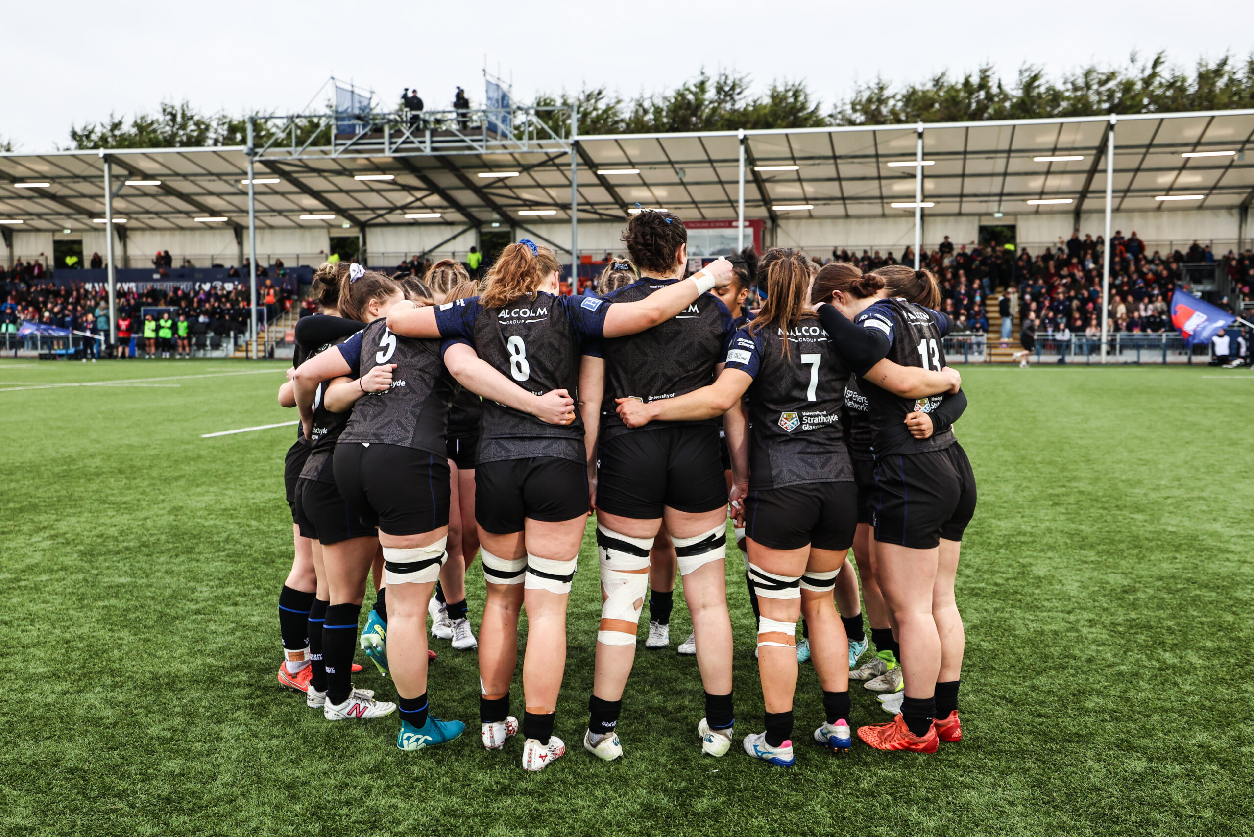 EDINBURGH, SCOTLAND - DECEMBER 27: The Glasgow squad huddle ahead of kick off during a Celtic Challenge match between Edinburgh Rugby Women and Glasgow Warriors Women at the Hive Stadium, on December 27, 2025, in Edinburgh, Scotland. (Photo by Ross MacDonald / SNS Group)