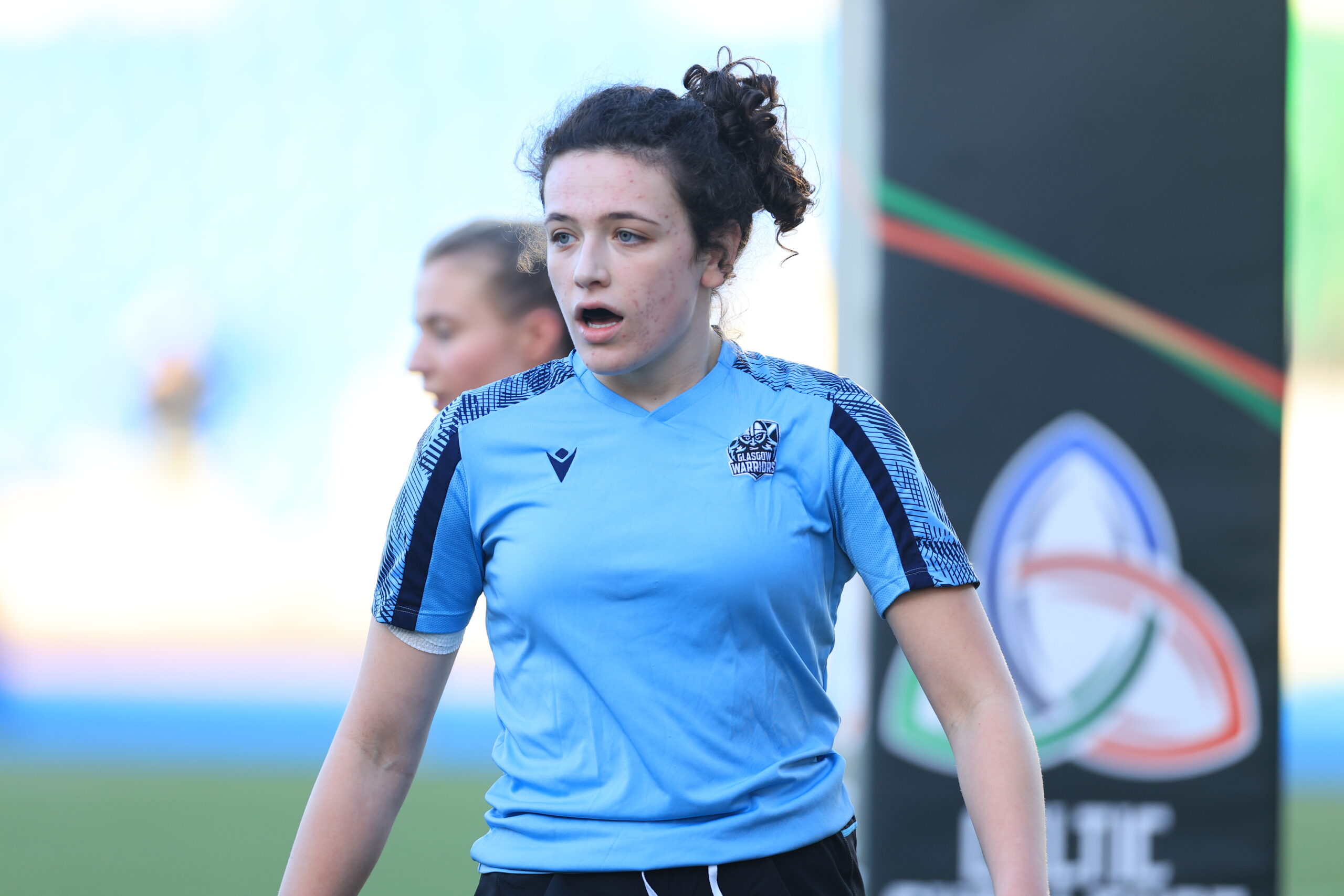 GLASGOW, SCOTLAND - JANUARY 13: Warrior's Holland Bogan warms up before a Celtic Challenge match between Glasgow Warriors and Wolfhounds at Scotstoun Stadium, on January 13, 2024, in Glasgow, Scotland. (Photo by Ewan Bootman / SNS Group)