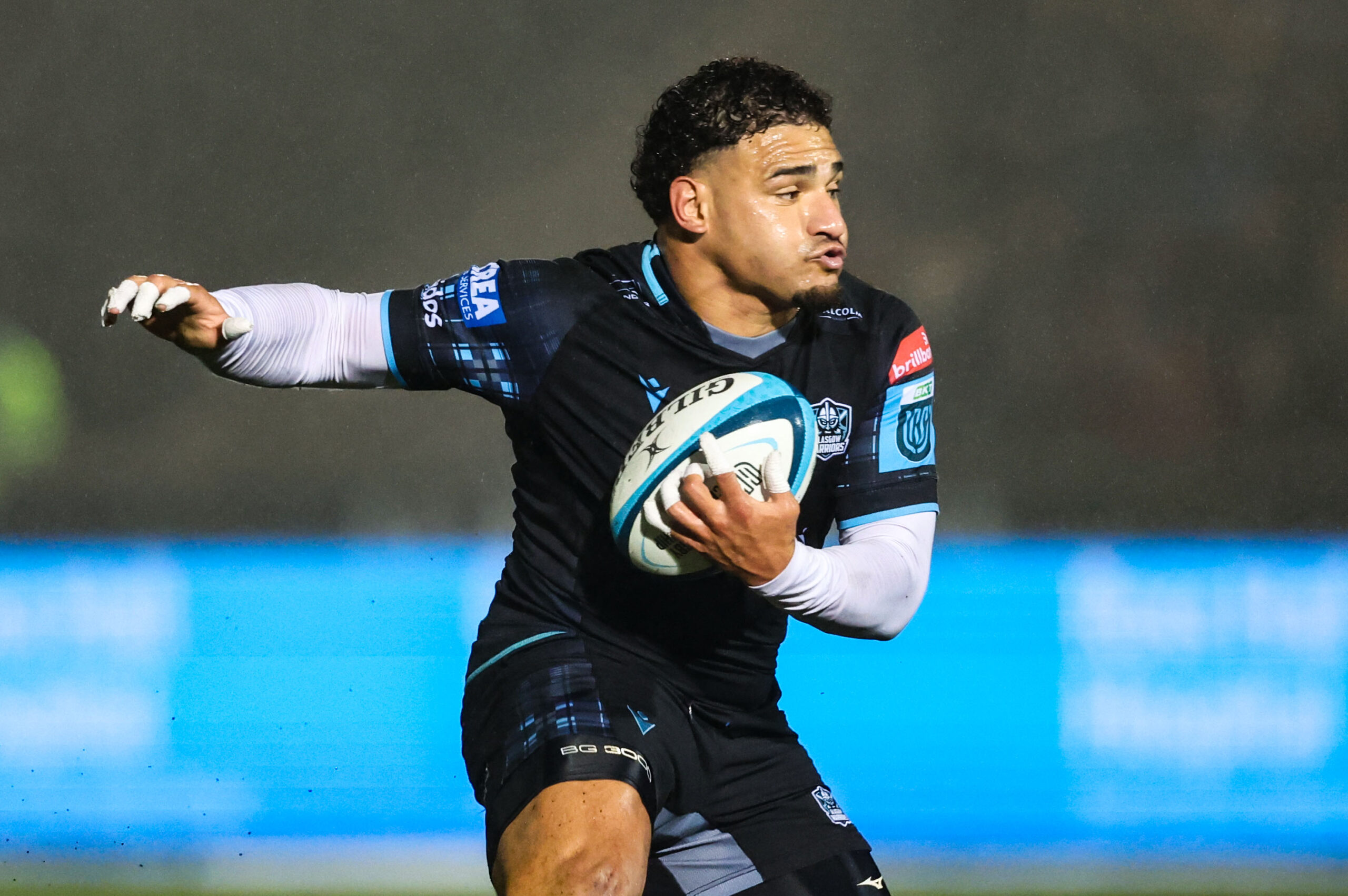 GLASGOW, SCOTLAND - DECEMBER 22: Warriors' Sione Tuipulotu in action during a BKT United Rugby Championship match between Glasgow Warriors and Edinburgh Rugby at Scotstoun Stadium, on December 22, 2023, in Glasgow, Scotland. (Photo by Ross MacDonald / SNS Group)