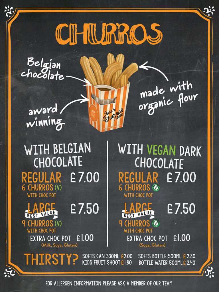 Made with organic flour and always served piping hot, you can pair them with your choice of silky Belgian chocolate or rich vegan dark chocolate. Go for a Regular (6 churros) or upgrade to a Large (9 churros) for even more dipping action. Extra choc pots are on hand if you’re the type who doesn’t share.